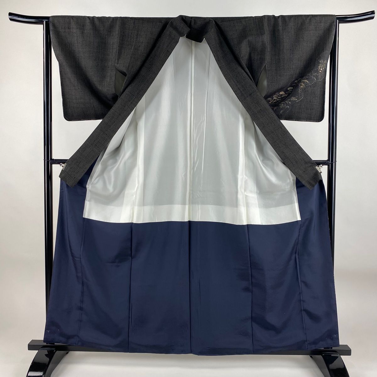 付下げ 身丈160cm 裄丈63.5cm S 袷 紬地 草花 波 絞り 金彩 黒 正絹 秀品の検索結果
