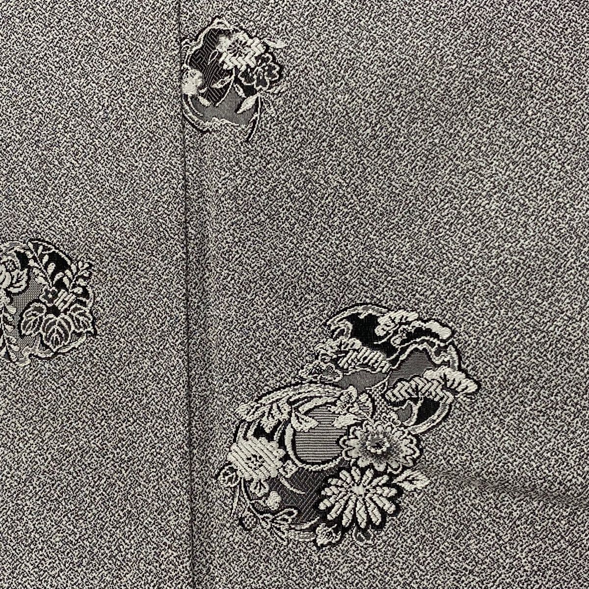 小紋 身丈160cm 裄丈66.5cm M 袷 花びら 地紋 ぼかし 灰緑 正絹 秀品