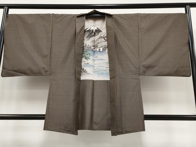 平和屋着物●男性 紬 アンサンブル 色無地 革色 正絹 AABC3252ck