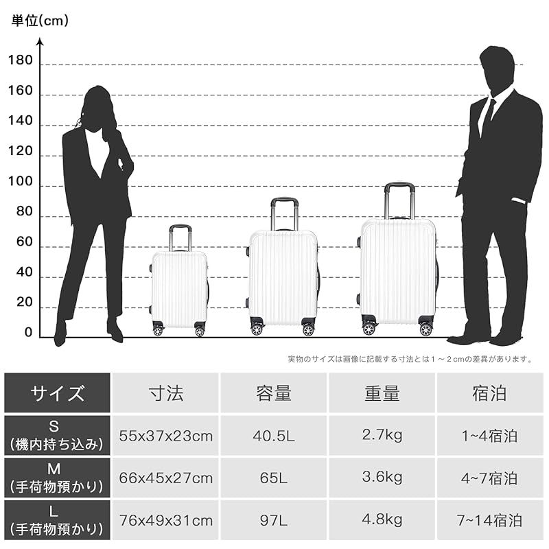 EXCITECH Biz 客室乗務員監修 スーツケース キャリーケース 拡張機能 ストッパー付き 超軽量 日本企業企画 Lサイズ 97L キャリーバッグ 旅行 ビジネス 出張 6?8泊 アイボリー 1
