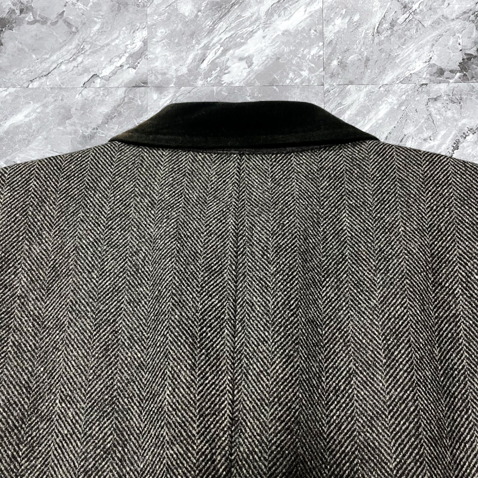 Paul Smith The British Collection ポールスミス ブリティッシュコレクション チェスターコート ロングコート ウール ヘリンボーン ベロア切り替え 比翼ボタン グレー 灰色 サイズL相当 WWW_NICORILABO_COM
