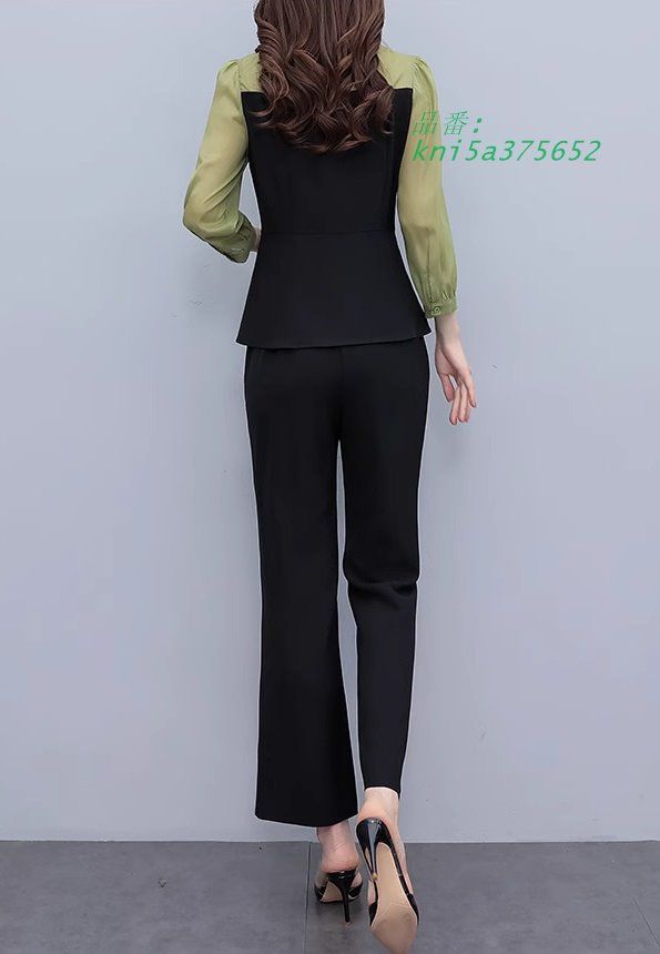 セットアップ レディース 秋服 オシャレセットアップ 長袖ブラウス ベストジャケット 通勤OL 卒業式 入学式 3点セット 九分丈パンツ 大人40代 オフィス kni4a774594
