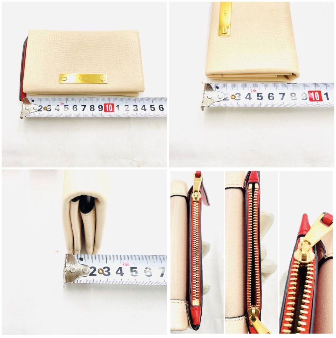 おしゃれ Chloé クロエ レザー 二つ折り財布 ベージュ×レッド 金具ロゴ付き 箱 ギャランティ付きの検索結果