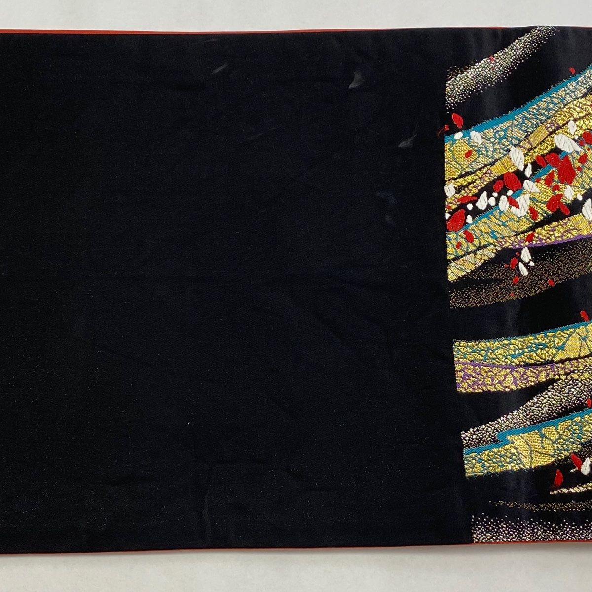 袋帯 秀品 振袖向き 幾何学 花びら 金銀糸 箔 黒 六通 正絹 WWW_NICORILABO_COM