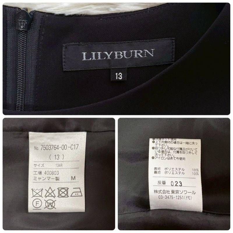 タグ付き ♥品 LILYBURN リリーバーン ブラックフォーマル ワンピース スーツ 13号 東京ソワール ノーカラー リボン付 冠婚葬祭 ケース付 WWW_NICORILABO_COM