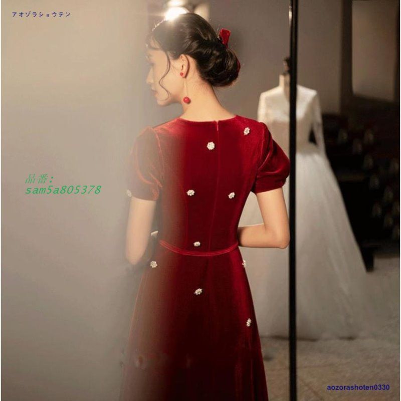パーティードレス 韓国 おしゃれ お呼ばれ 上品 結婚式 二次会 大きいサイズ 半袖 ロング 可愛い 謝恩会 ワンピース 成人式 エレ白 kni4a390355