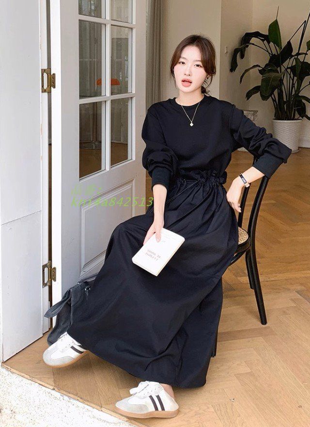 ワンピース レディース 長袖 切り替え スウェットワンピース ロング丈 フ ウエストマーク 丸首 大きいサイズ おしゃれ 韓国 春 秋冬 黒 ファッション kni4a842513 WWW_NICORILABO_COM