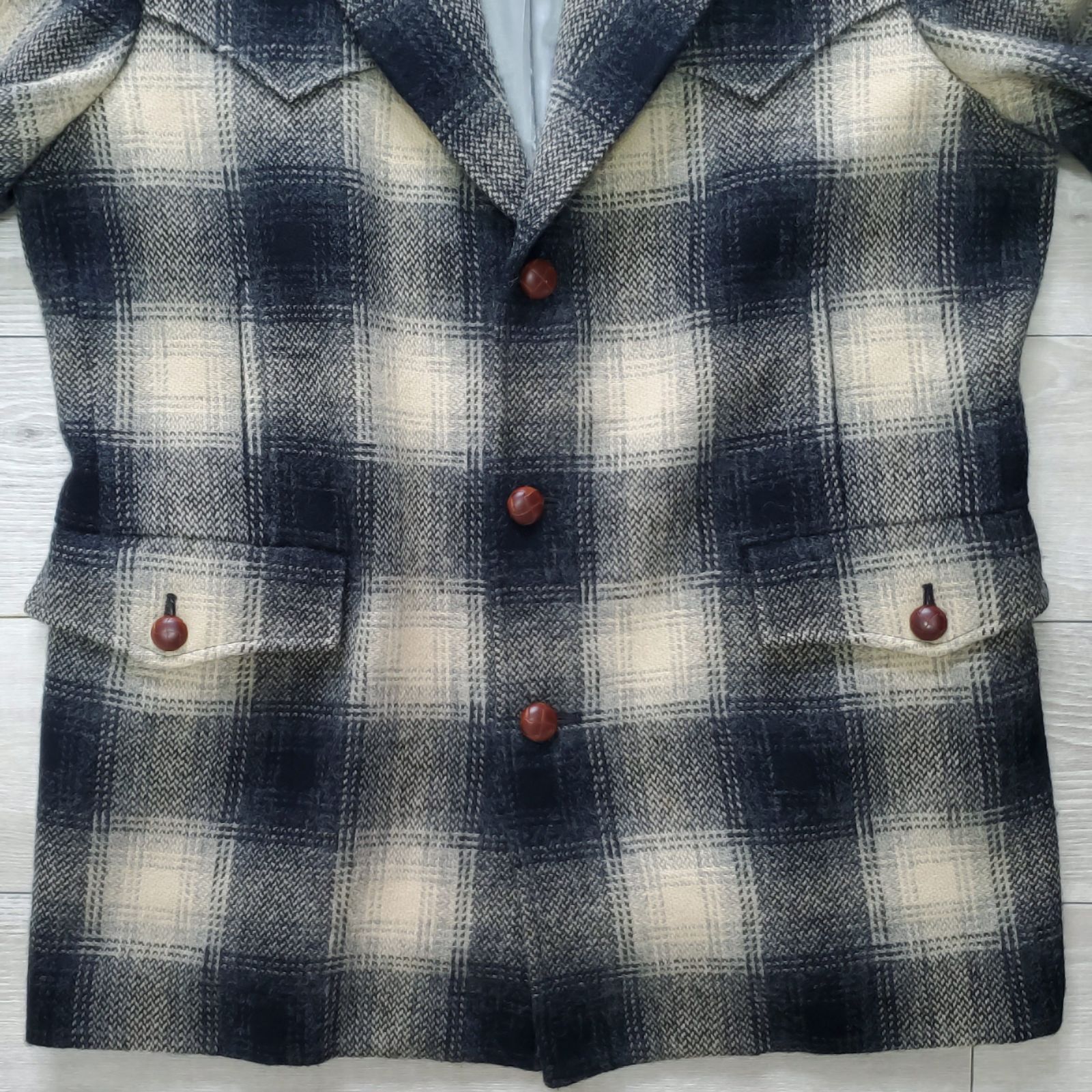 RALPH LAUREN COUNTRY ラルフローレン カントリー 1990s 白×黒 オンブレチェック ウエスタン ウールジャケット 9 シャドー カーコート ハーフ RRLダブルアールエル グラデーション 古着 50-60sモチーフ WWW_NICORILABO_COM