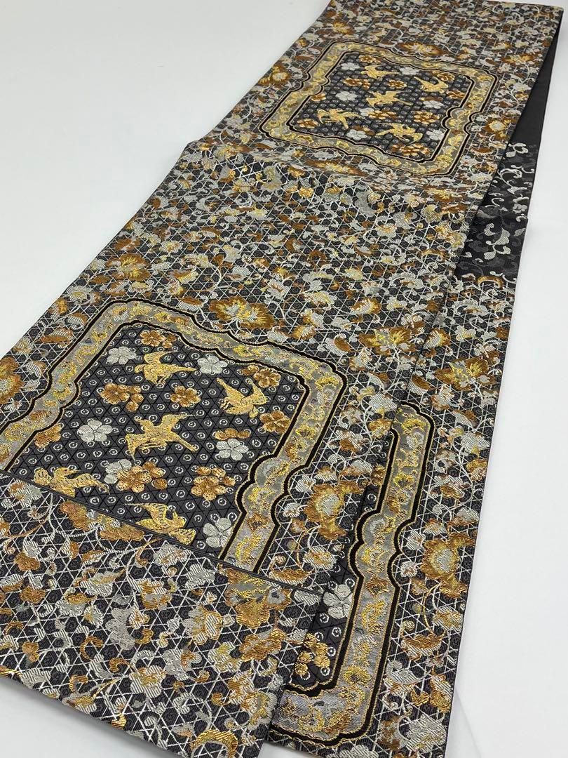 加納幸 西陣織 袋帯 篭魚子裂 鳥 金糸 正絹 三通の検索結果