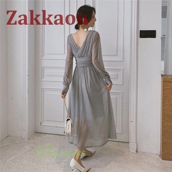 パーティードレス レディース ロング 長袖 Vネック ワンピ 女子会 花嫁二次会 社交 結婚式 ドレス 成人式 お呼ばれ ワンピース パーティ kni4a205485 WWW_NICORILABO_COM