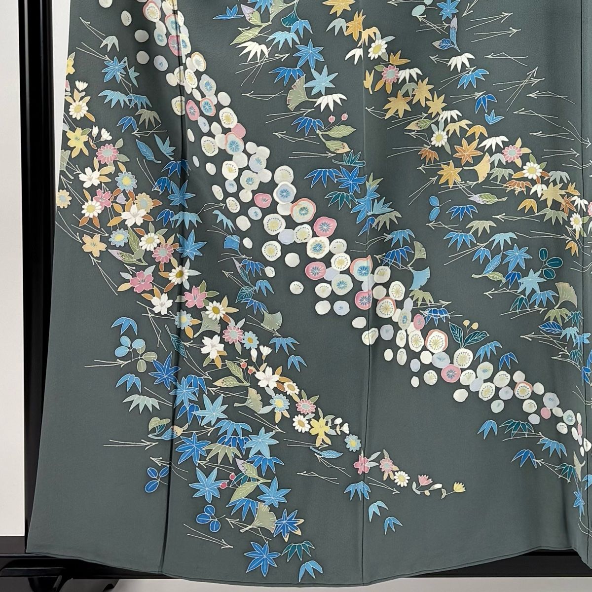 訪問着 身丈158.5cm 裄丈62.5cm S 袷 落款 梅 草花 灰緑 正絹 名品 一つ紋の検索結果
