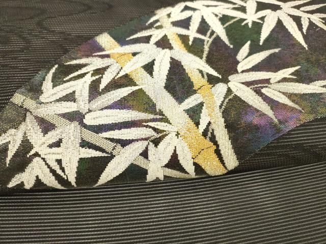 平和屋着物*夏物 九寸名古屋帯 流水地紙笹竹文 黒地 金銀糸 正絹 DAAX8619cm WWW_NICORILABO_COM
