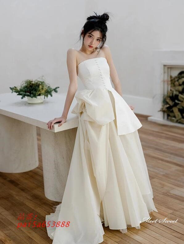 ウェディングドレス ロングドレス Aラインドレス ベアトップ スリット アシンメト二次会 前撮り ウエディングドレス 花嫁 結婚式 チュール ブライダル pai5a653888 WWW_NICORILABO_COM