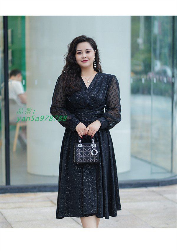 ワンピース ぽっちゃり ドレス ミモレ丈 袖あり 長袖 きれいめ パーティードレス 大きいサイズ レディース Aライン ワンピ 秋 春 Vネック yan5a978788 WWW_NICORILABO_COM