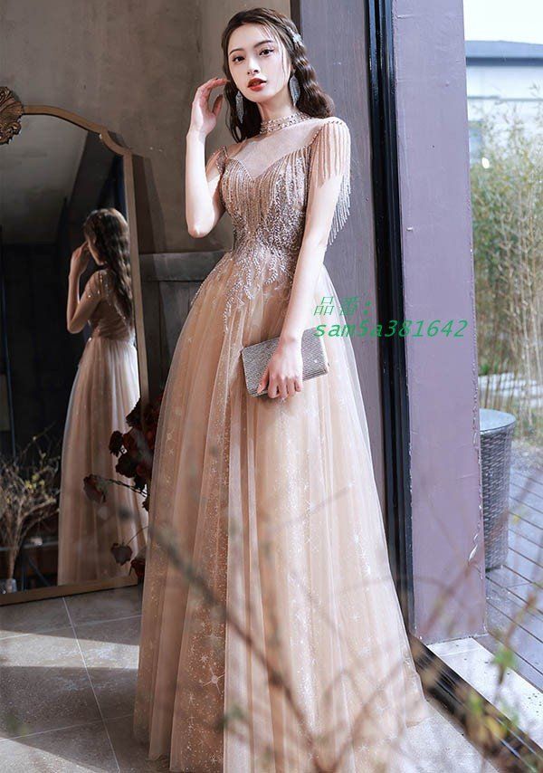 ドレス キラキラ 大人 ピアノ 発表会 ロングドレス 小さいサイズ 母親 袖付き 大きいサイズ 演奏会用ドレス ロング 演奏会 結婚式 長袖 pai5a421599