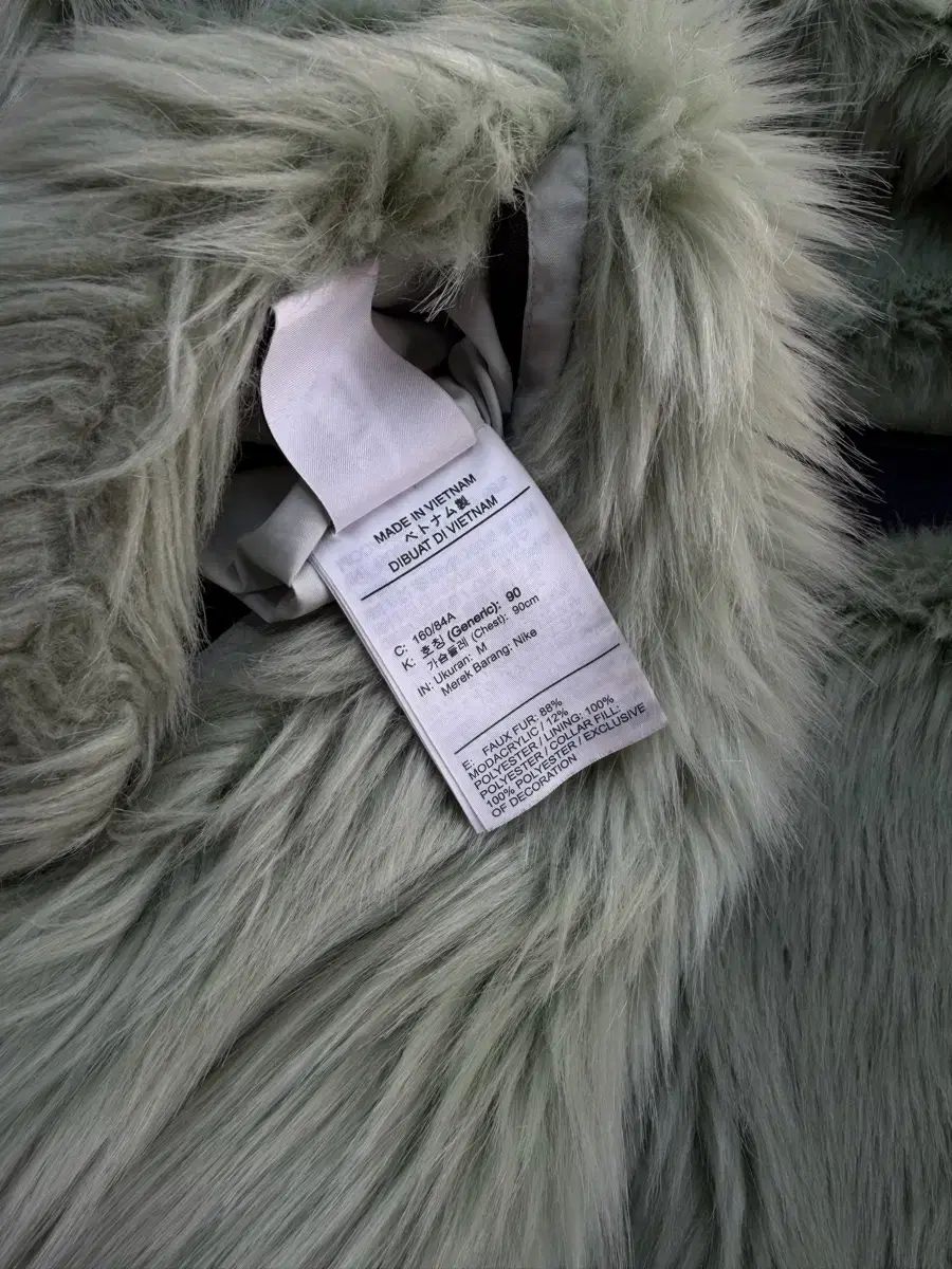 ミントトーンのファーテクスチャーは光の角度によって柔らかく変化し、
