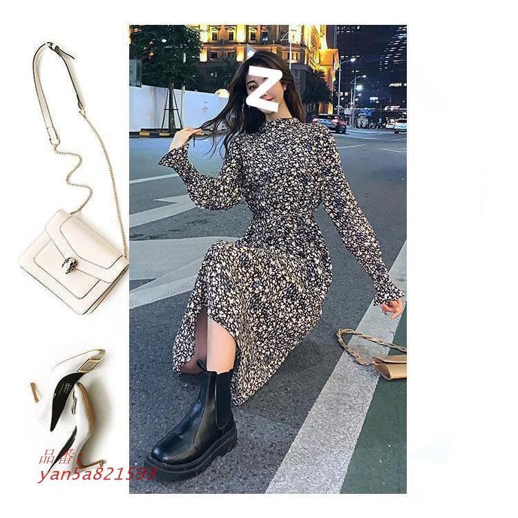 レディース 裏起毛 ワンピース 長袖 秋冬 マキシ丈 チェニック 花柄 シフォン フレンチ ロング 厚手 レトロ ファッション ゆったり ワンピース yan5a821599 WWW_NICORILABO_COM