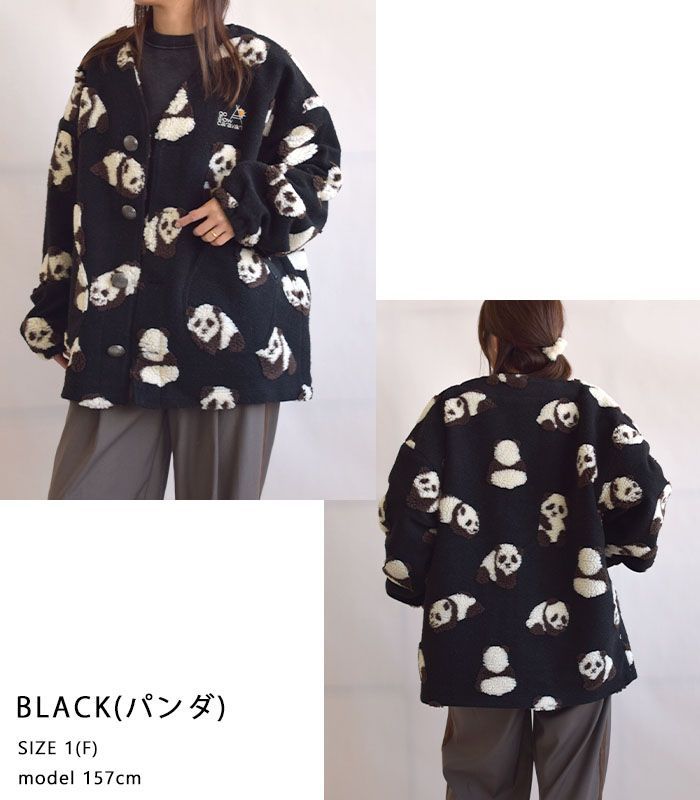 2025秋冬 ゴースローキャラバン go slow caravan ボア アウター カーディガン コート レディース カーデ ジャガード 動物柄 パンダ ひつじ 羊 Vネック 長袖 ブラック グリーン Fサイズ 350216 WWW_NICORILABO_COM