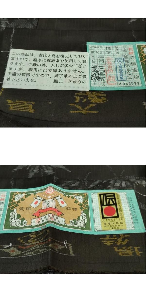 平和屋着物 上 本場大島紬 吉三郎 吉織物謹製 古代染色純泥染 証紙付き ♥ DZAB0179kh5