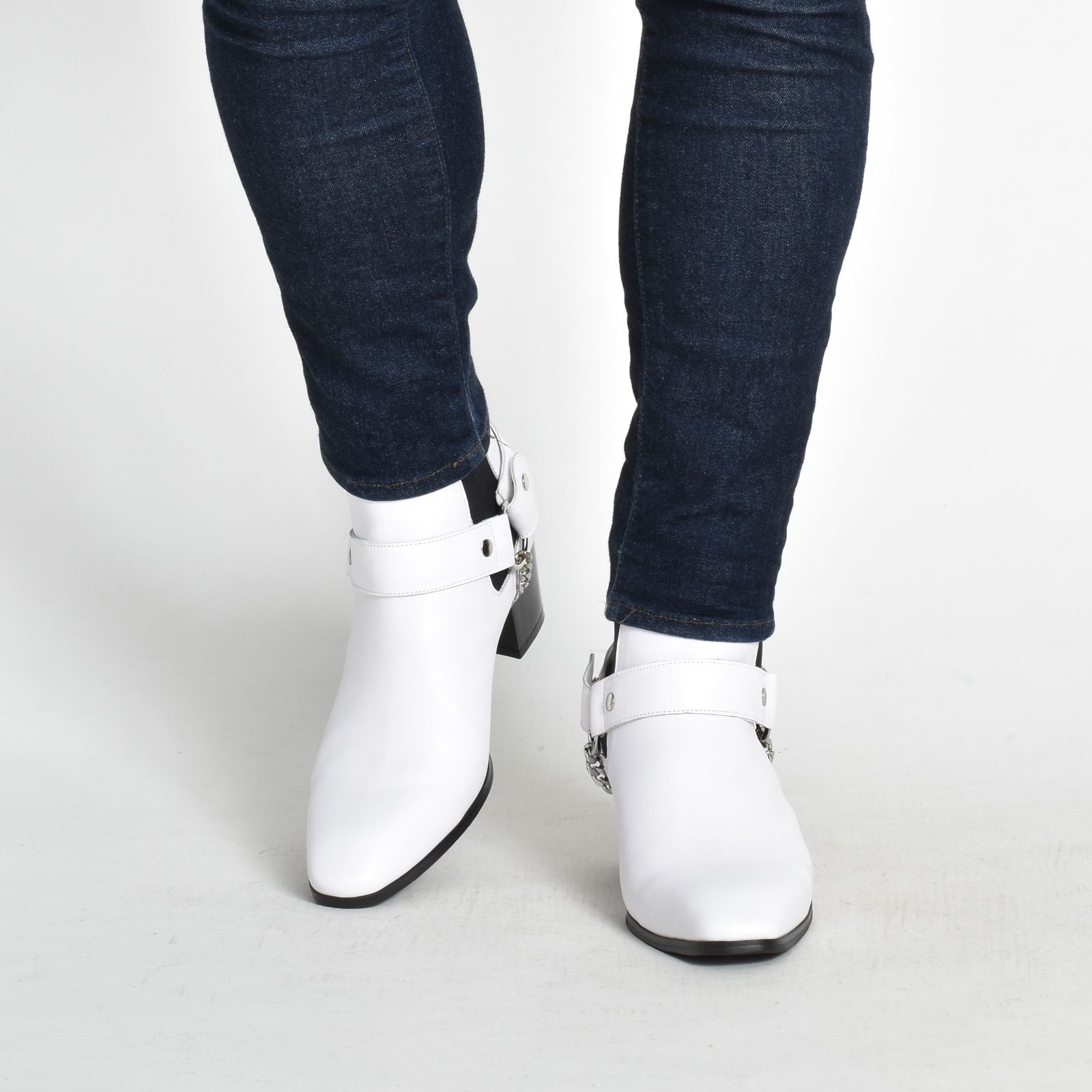 ♥ ヒールブーツ 3E エンデヴァイス サイドゴアブーツ メンズブーツ リング付き 本革 厚底ブーツ モード シルバーアクセント スタイリッシュ セクシー ヒール 高身長効果 クール 感 革靴 ワイド ホワイト 白 ELB660-2-CP-S WWW_NICORILABO_COM