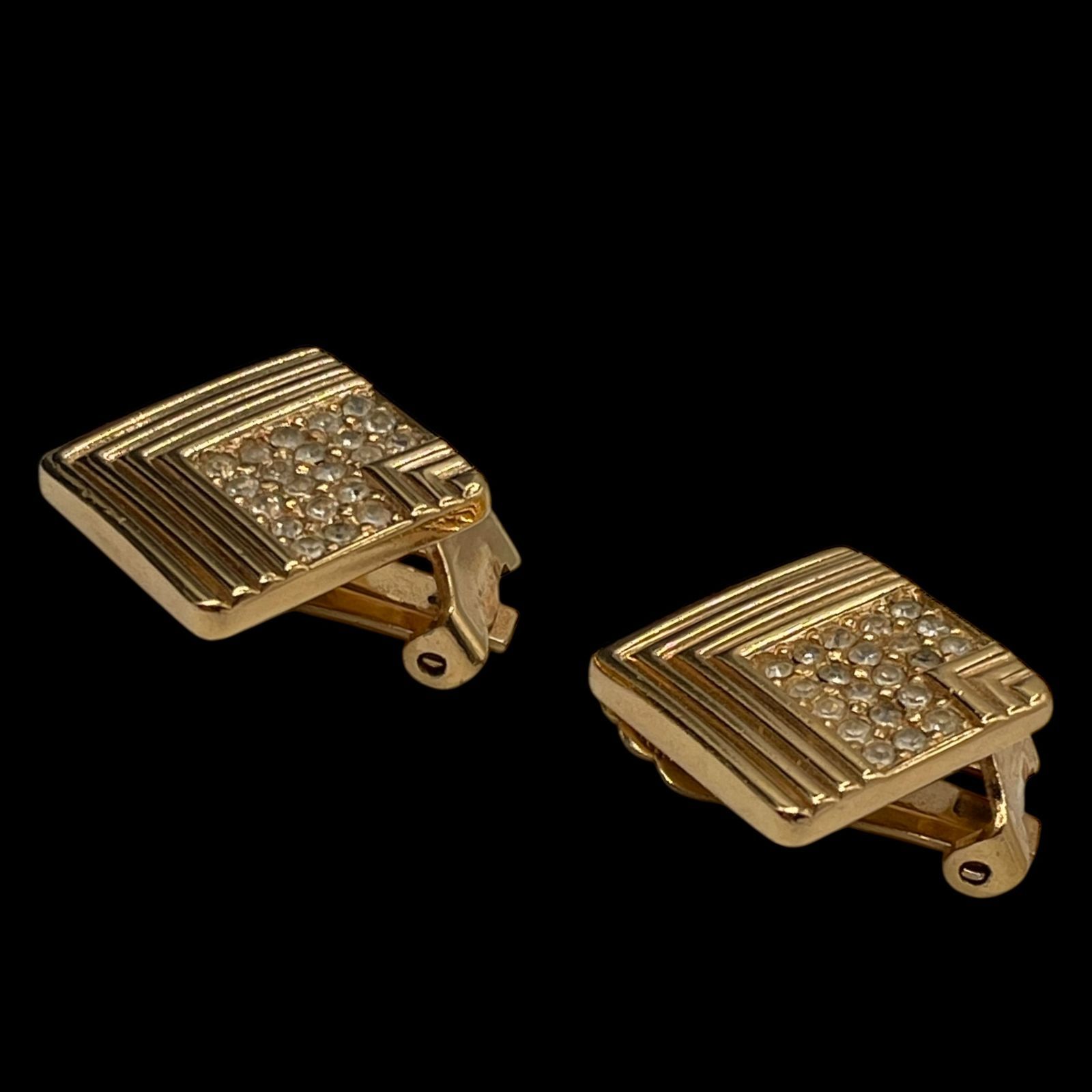 Christian Dior クリスチャン ディオール Chr.Dior ゴールド イヤリング スクエア ラインストーン アクセサリー ジュエリー 耳飾り 小物 ヴィンテージ WWW_NICORILABO_COM