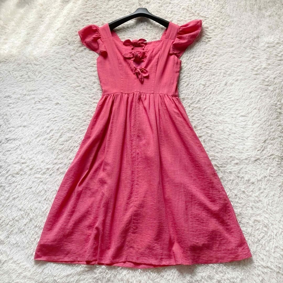 Chesty チェスティ ロングフ ワンピース Aライン フリル バックりぼん バックオープン スクエアネック 細かなラメ入り ピンク 1サイズ WWW_NICORILABO_COM