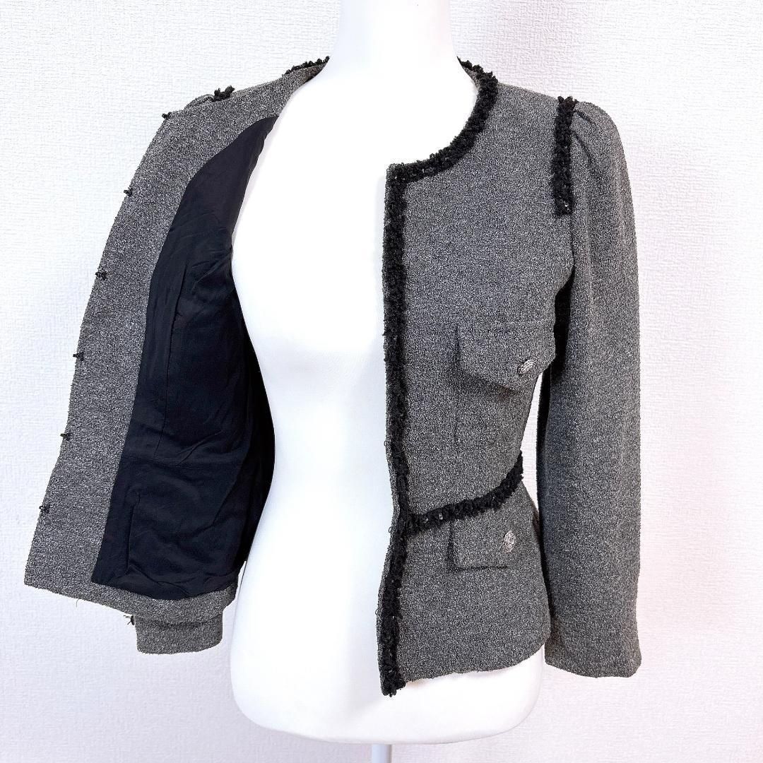 Rene ノーカラージャケット ポケットデザイン 36 グレー×黒 無地の検索結果