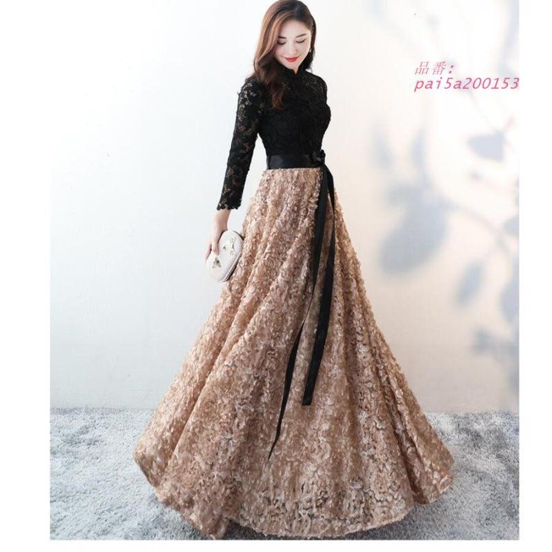 袖あり 立ち襟 ロングドレス 結婚式ドレス パーティードレス ウエディングドレス ピアノ 演奏会 二次会 大きいサイズ 衣装 舞台 披露宴 イベント用 発表会 pai5a200153 WWW_NICORILABO_COM