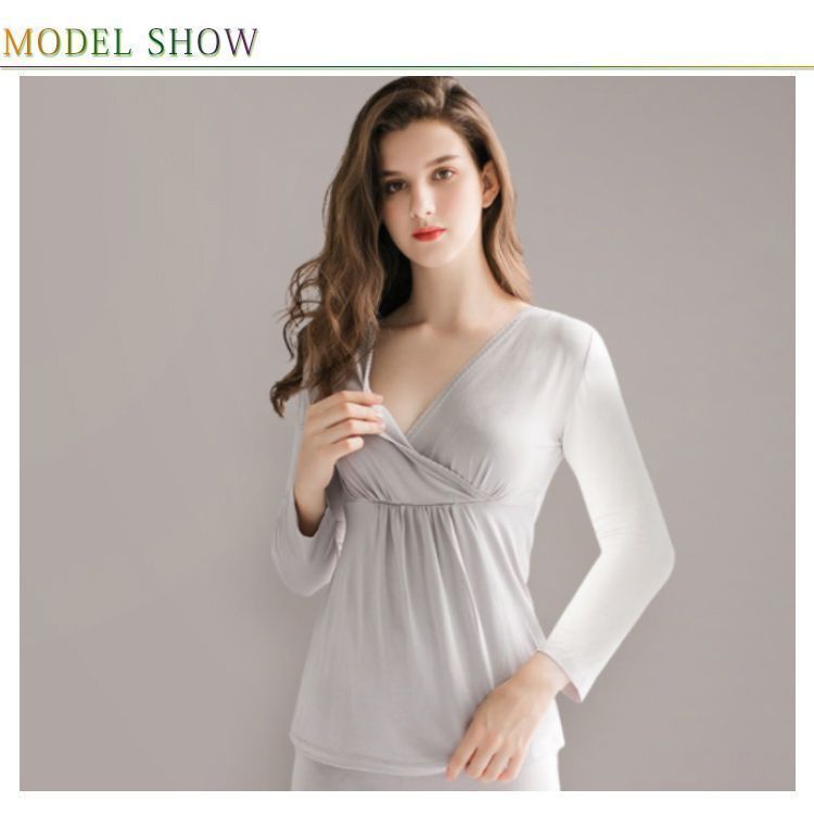 授乳インナー クロスオープン マタニティ インナー 授乳服 マタニティウェア シンプル 下着 妊婦 ママシャツ 重ね着 丈長 長袖 肌着 ゆったり カシュクール 冷え対策 授乳服 トップス 産前 産後 tgbt857 WWW_NICORILABO_COM