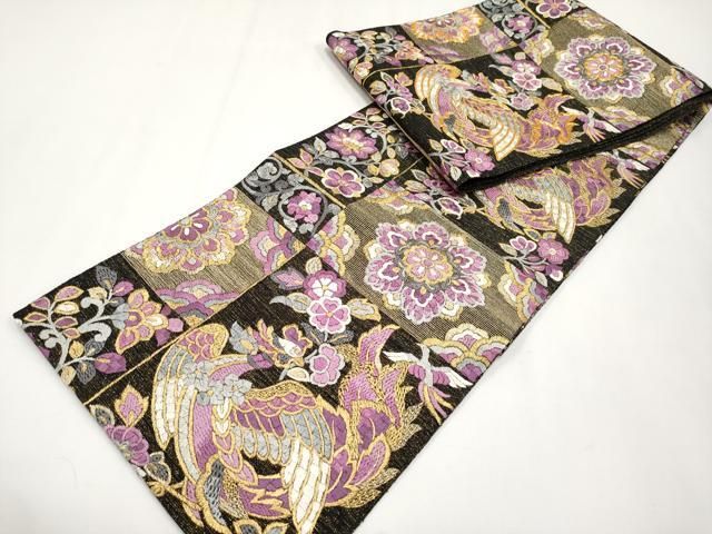 平和屋本店 上 京の名門 じゅらく謹製 帝王紫 袋帯 総刺繍 駒刺繍 鳳凰草花文 黒地 金糸 CYAA3778s5の検索結果