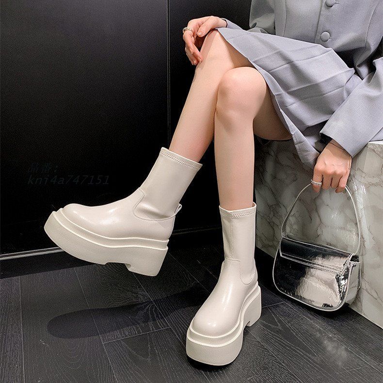 ショートブーツ 合成皮革 レザー 厚底ブーツ チャンキーヒール レディース ミドルブーツ 6CMヒール 歩きやすい 全2色 太ヒール 履きやすい 美脚 バックジップ kni4a747151 WWW_NICORILABO_COM