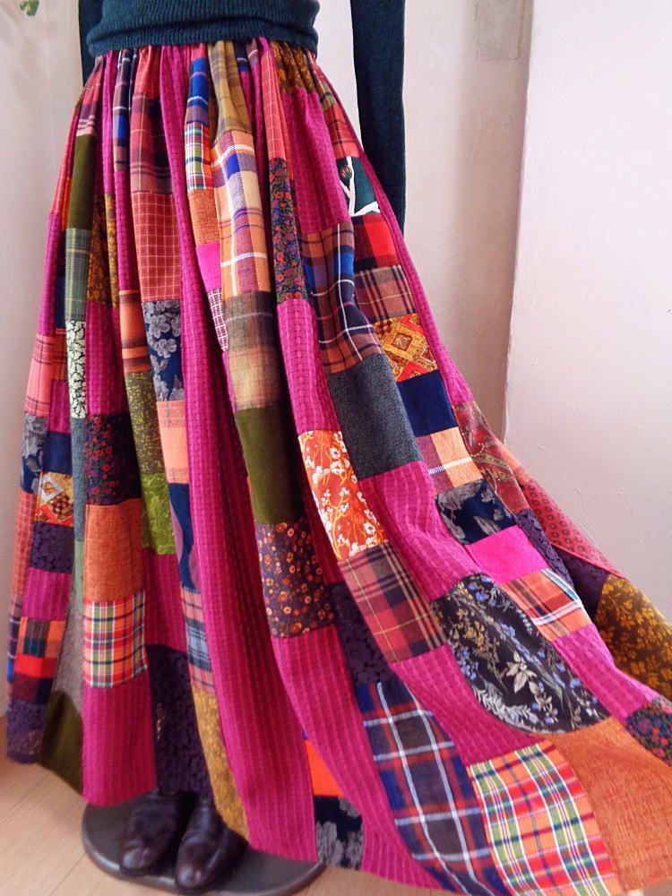 絵画なパッチワーク Heart マゼンタピンク ボリュームギャザースカート マキシ丈の検索結果