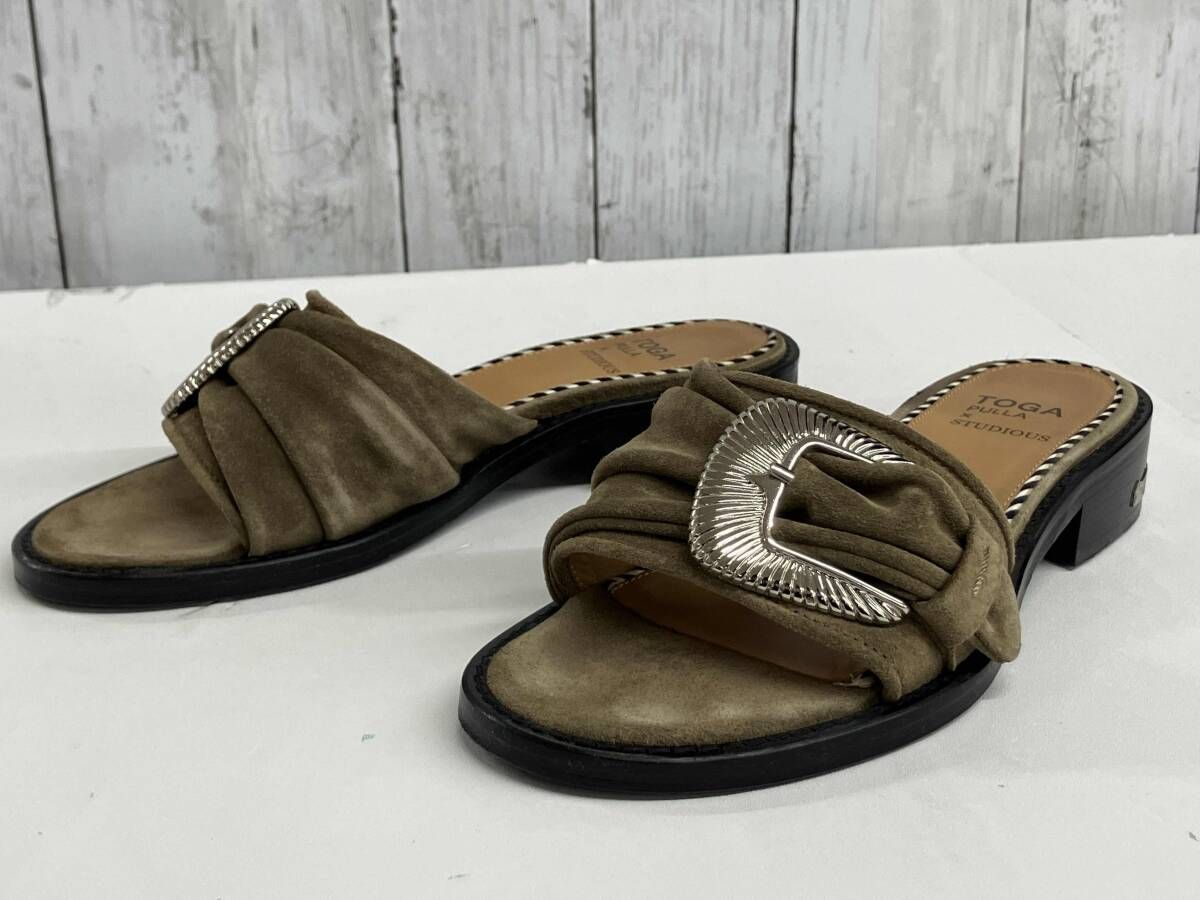 TOGA PULLA × STUDIOUS METAL SANDALトーガプルラ メタルサンダル カーキ スウェードAJ964E サイズ36 WWW_NICORILABO_COM