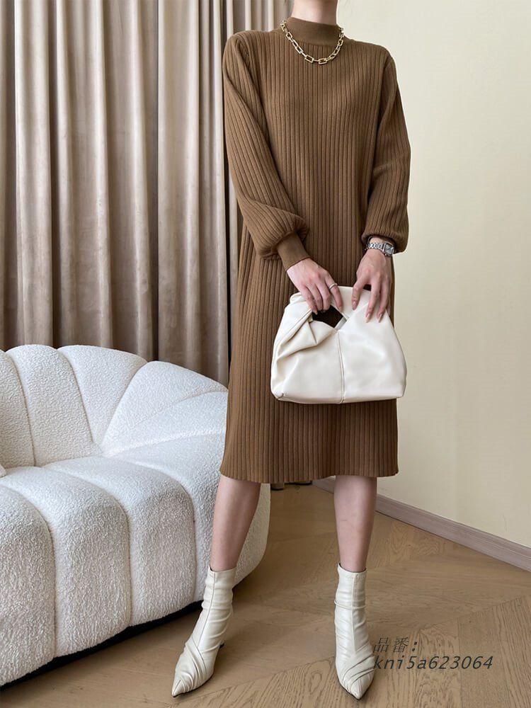 ニットワンピース レディース 韓国 モックネック ハイネック リブニット ひざ下 体系カバー ワンピース ニット ひざ丈 ストレッチ 長袖 ゆったり kni5a623064 WWW_NICORILABO_COM