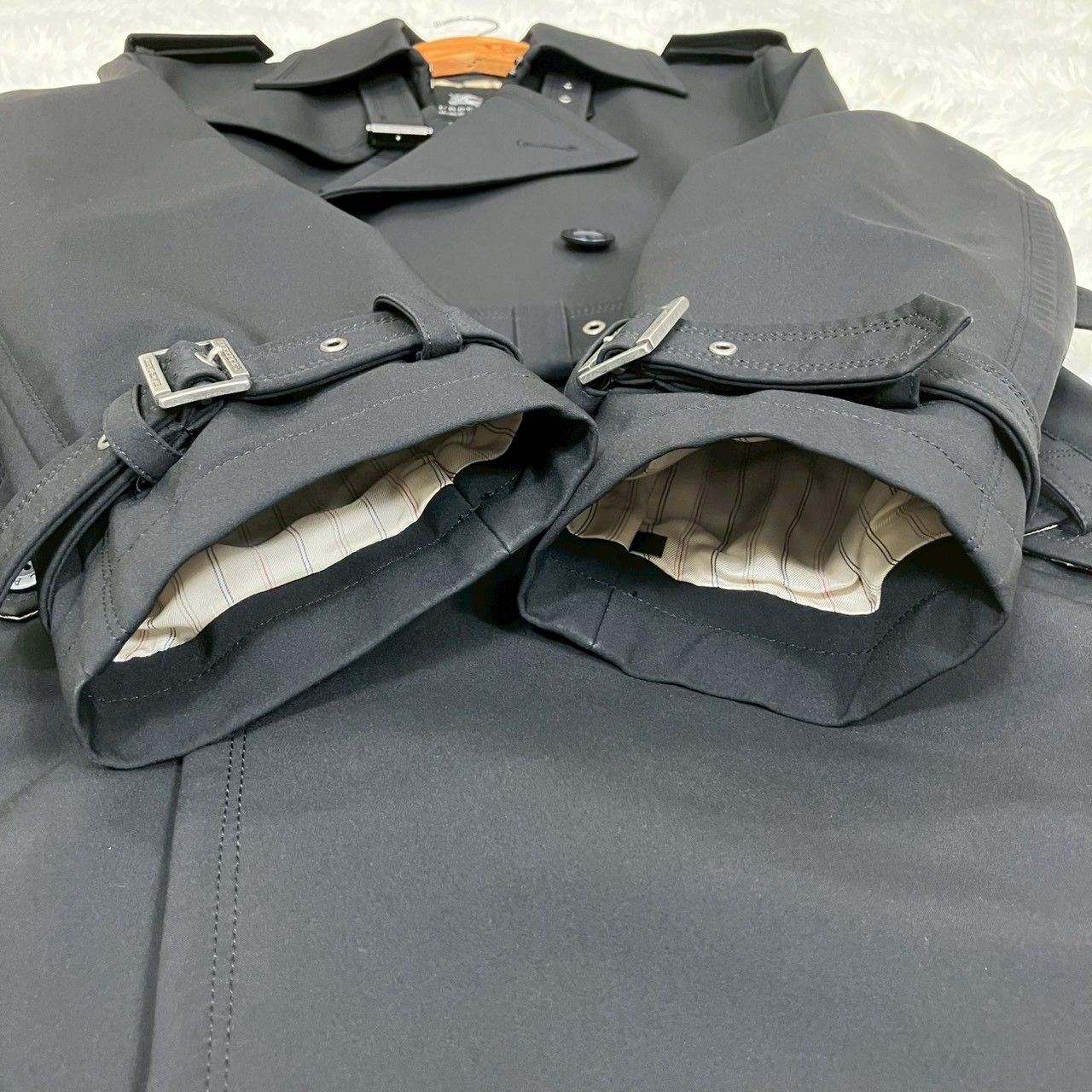 バーバリーブラックレーベル トレンチコート 裏地 フラップ裏ノバチェック チンストラップ 黒 Mサイズ お値段交渉を受け付けます WWW_NICORILABO_COM