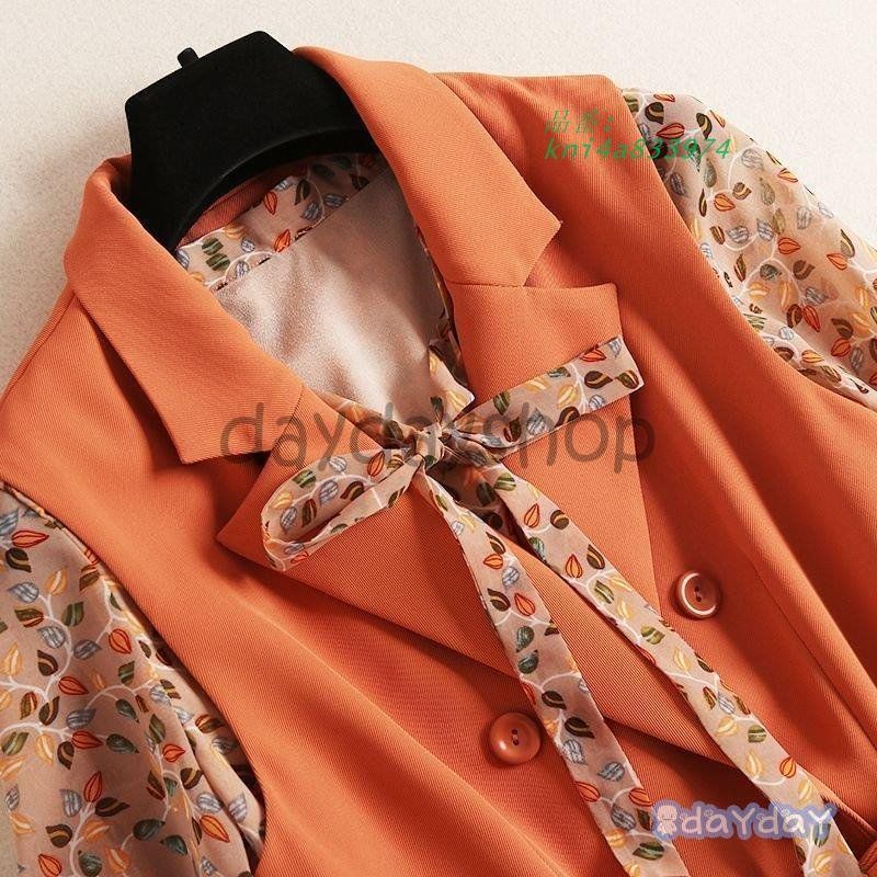 セットアップ ジャケット ワンピース 襟付き 総柄 シフォンワンピ フロントボタンガー定番 ボウタイリボン 長袖 女子会 ウエストリボン kni4a833974 WWW_NICORILABO_COM