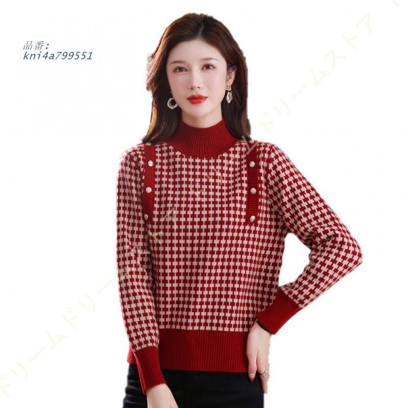 レディース セーター 冬服 トップス 厚手 ニットカットソー リブニット ニットセーター カジュアル タートルネック ハイネック クリスマス ゆったり 可愛い kni4a212838