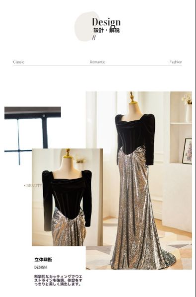 ブラック ロングドレス 魚尾スカート 長袖 感 優雅 パーティー 結婚式 宴会 ホスト ステージ 披露宴 エレガント レディース 送料無料 入荷の検索結果