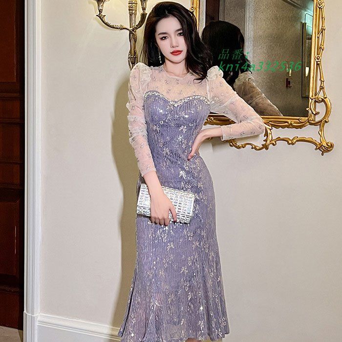 シースルー刺繍長袖 ビジュー胸元 長袖ロングドレスワンピース 紫 パーティー 結婚式 韓国 レディース お呼ばれ kni4a332536の検索結果