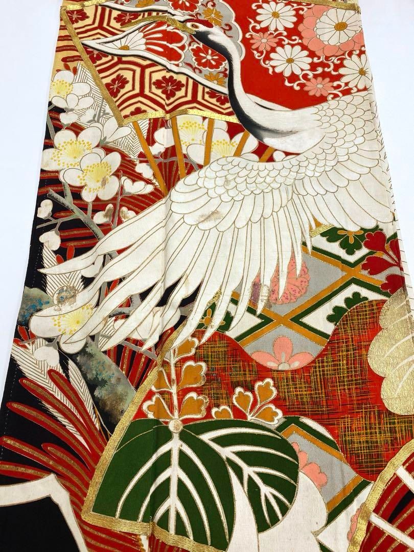 アンティーク 振袖 金駒 金彩 銀彩 相良刺繍 鶴 正絹 身丈169cm 紋付 WWW_NICORILABO_COM
