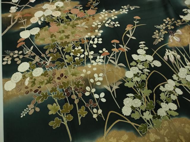 平和屋本店 上 訪問着 駒刺繍 秋草文 暈し染め 黒地 金彩 DZAB0764kh5の検索結果