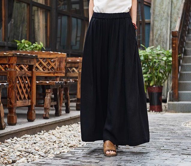 ガウチョパンツ ワイドパンツ レディース 30代 40代 50代 七分丈 ウエストゴム 夏 涼しい レディースパンツ 綿麻風 パンツ スカーチョ スカンツ 無地 zhengr20