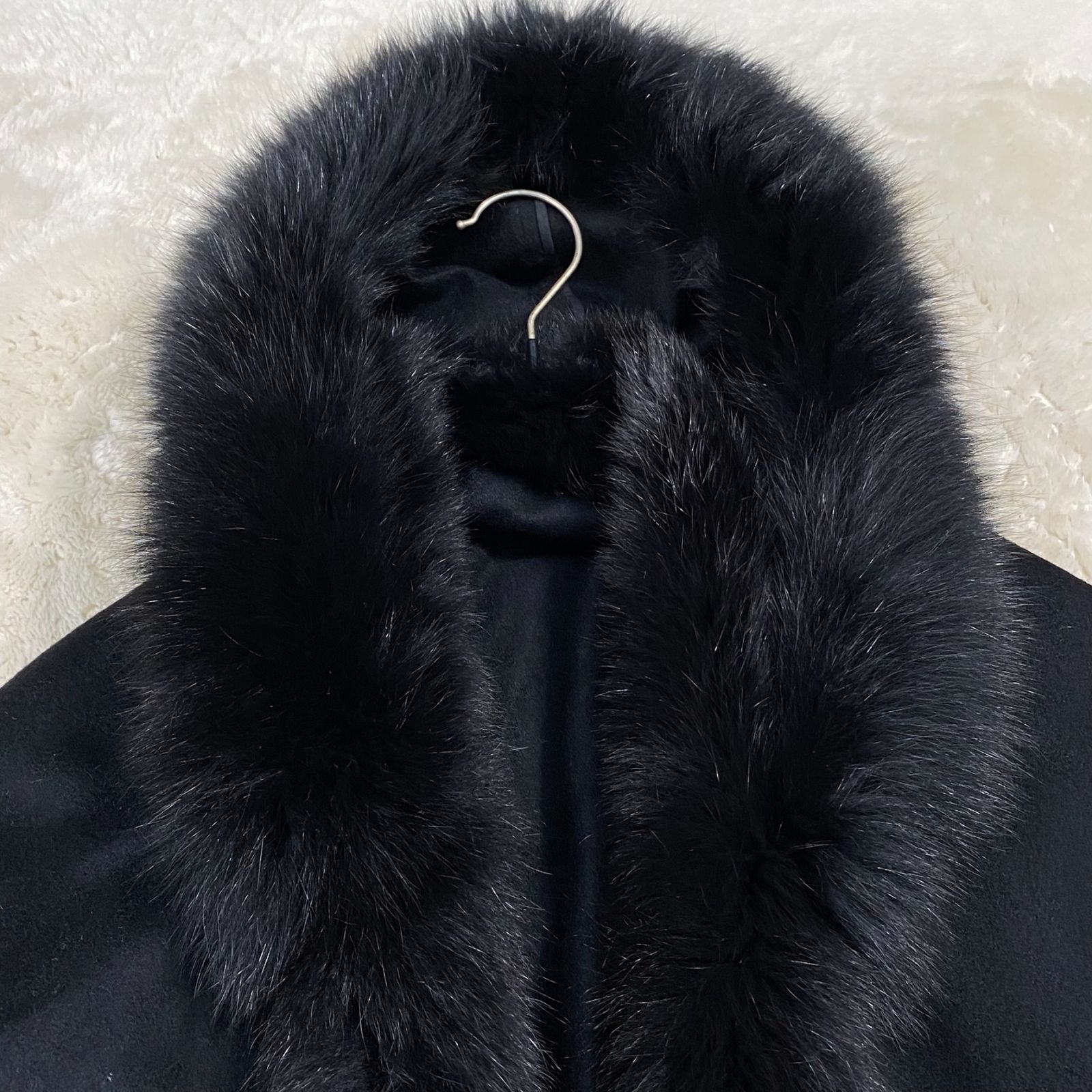 ピュアカシミヤ フード付取り外し ファー付き ポンチョ ケープ ブラックの検索結果