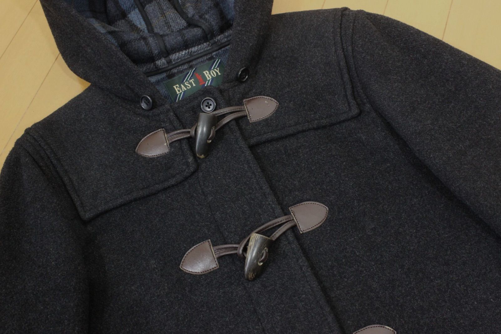 53 イーストボーイ ダッフルコート 9 グレー M 裏チェック柄 EAST BOY 通学 女子中学生 女子高校生 スクールコート WWW_NICORILABO_COM