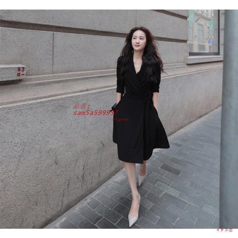 ワンピース ドレス ミモレ丈 袖あり 長袖 大きいサイズ 春 ワンピ Aライン レディース Vネック パーティードレス ぽっちゃり 秋 きれいめ yan5a343963