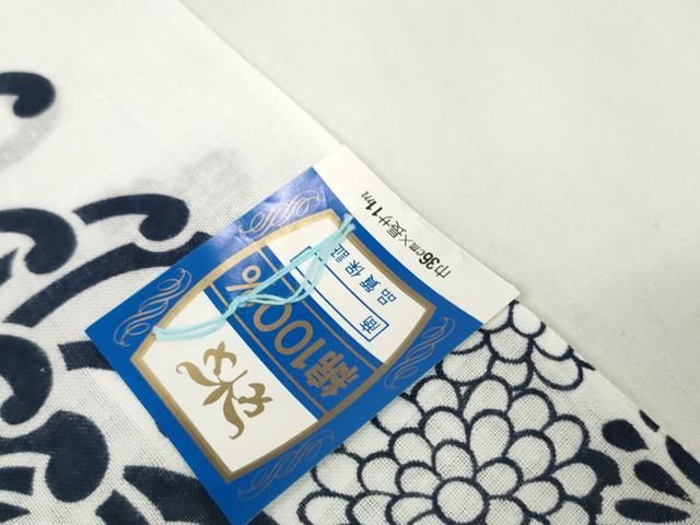 平和屋着物*夏物 浴衣 反物 着尺 綿絽 長板藍染 雲取り吉祥花文 証紙付き 綿 ♥ DAAW7540zzz