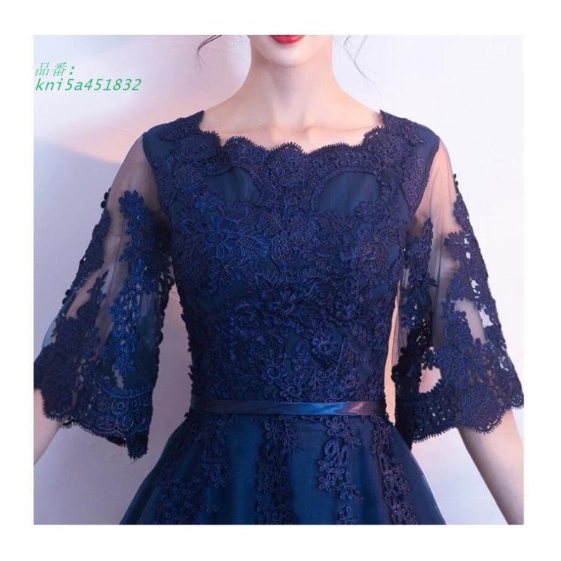 パーティードレス 韓国 おしゃれ 安い お呼ばれ 結婚式 ロング プチプラ 個性的 謝恩会 可愛い 半袖 ワンピース ブルーレース 成人式 二次会 kni4a666788