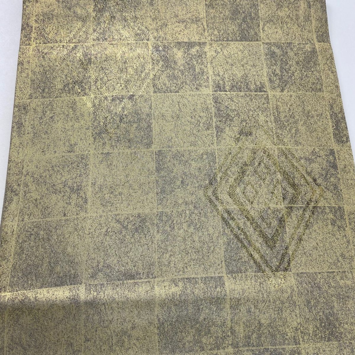 袋帯 秀品 落款 紬地 菱 格子 金彩 金色 お太鼓柄 正絹 WWW_NICORILABO_COM