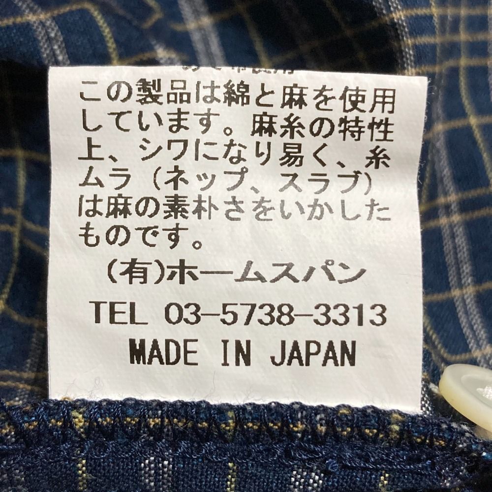 HOMSPUN ホームスパン コットンリネンVネック チェック柄 半袖 ロング ワイドワンピース 211-1607 Mサイズ ネイビー レディース 古着の検索結果