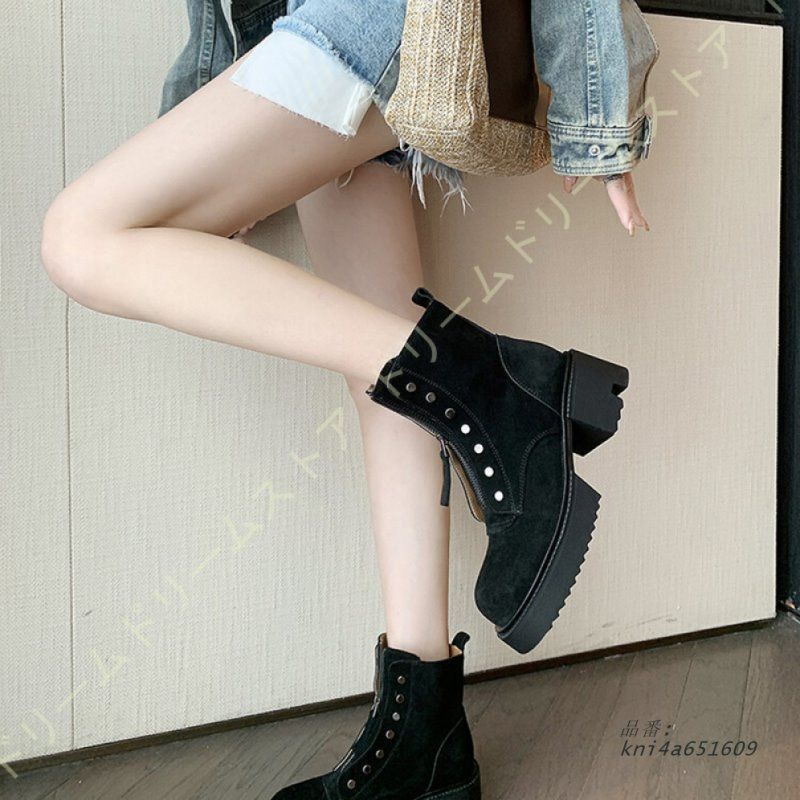 ブーツ ショートブーツ フロントジップ 厚底ソール レディース プラットフォーム アンクル丈 厚底靴 フロントジッパー ジップアップ 牛革スエード 衣装 レザー kni4a651609 WWW_NICORILABO_COM